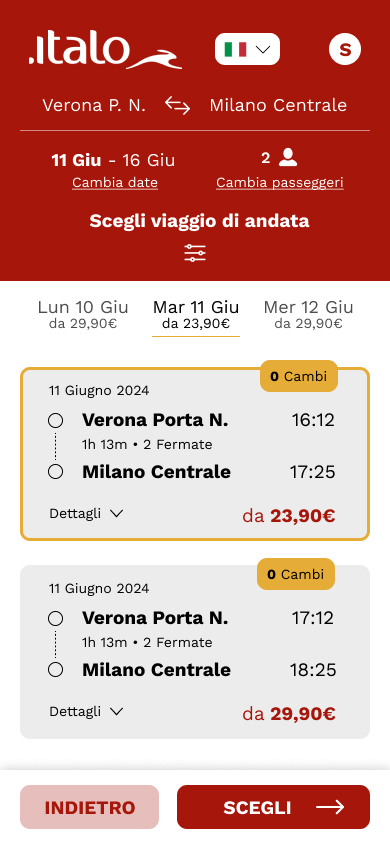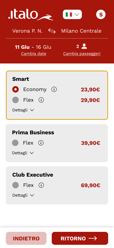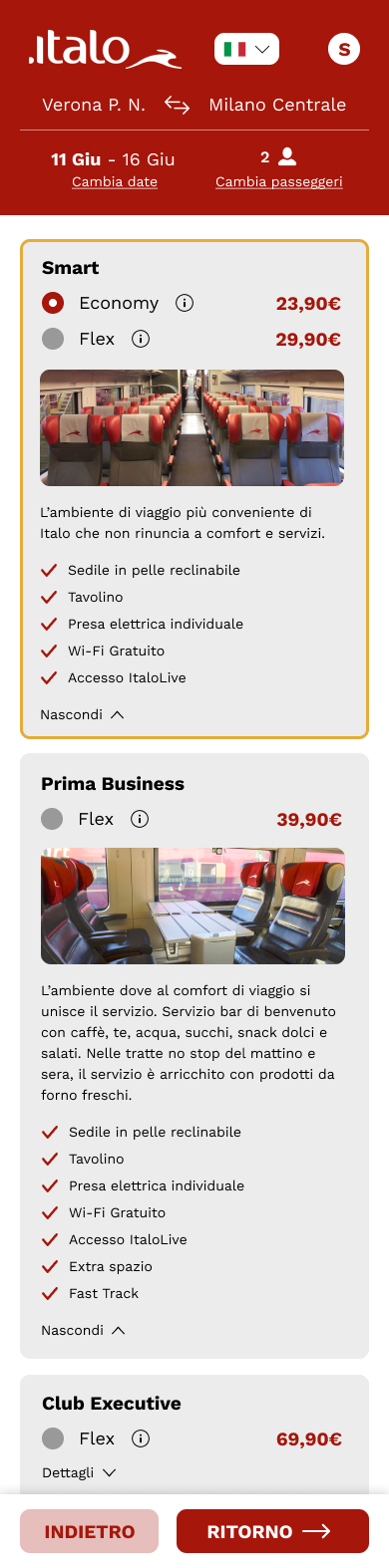 • Introduzione di un’interfaccia più moderna e coerente con l’identità del brand Italo.