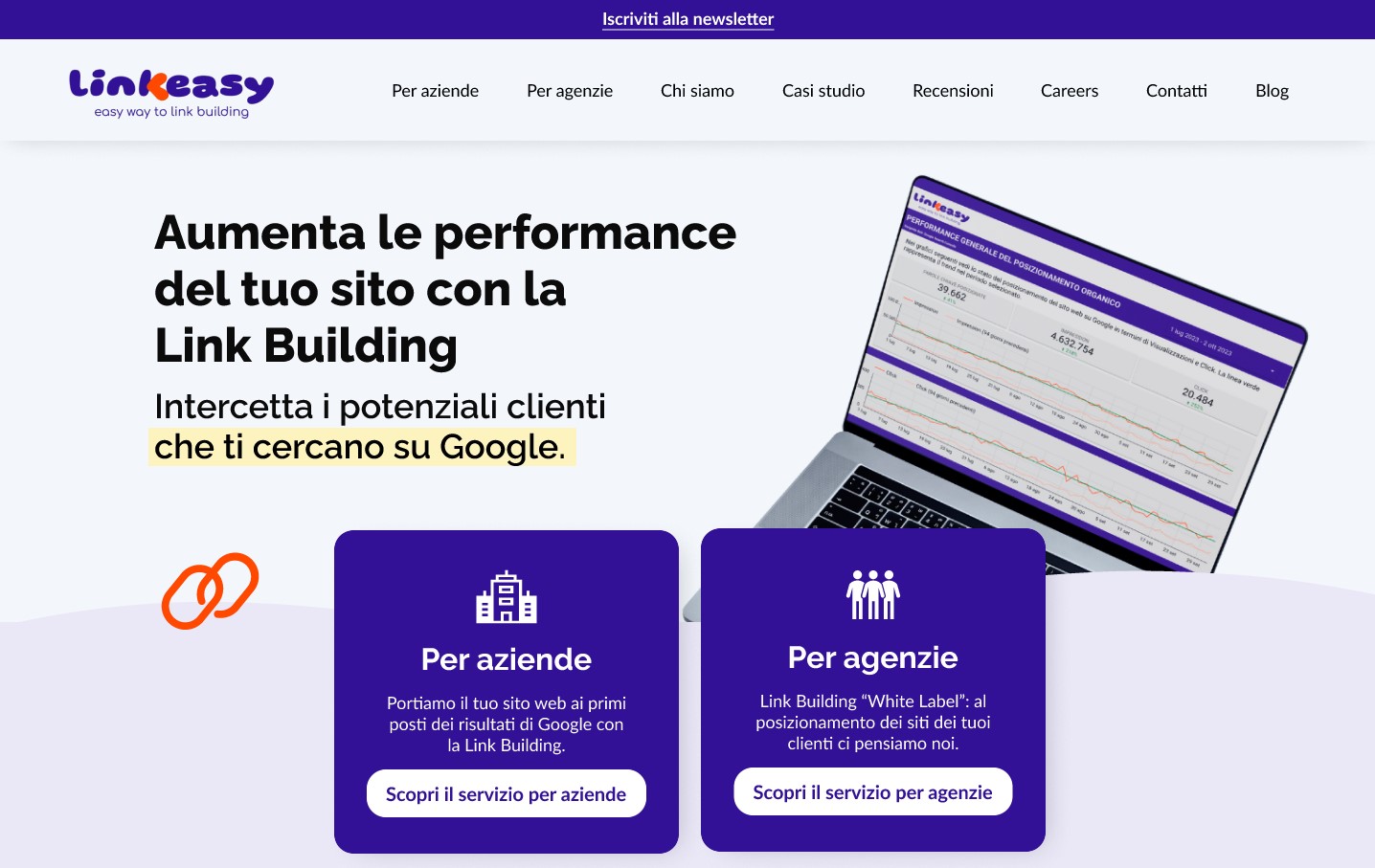 LinkEasy è un servizio specializzato in soluzioni di link building e ottimizzazione SEO per migliorare la visibilità online delle aziende. Come progetto personale per proporre il design al cliente, ho realizzato il nuovo design della loro Homepage.