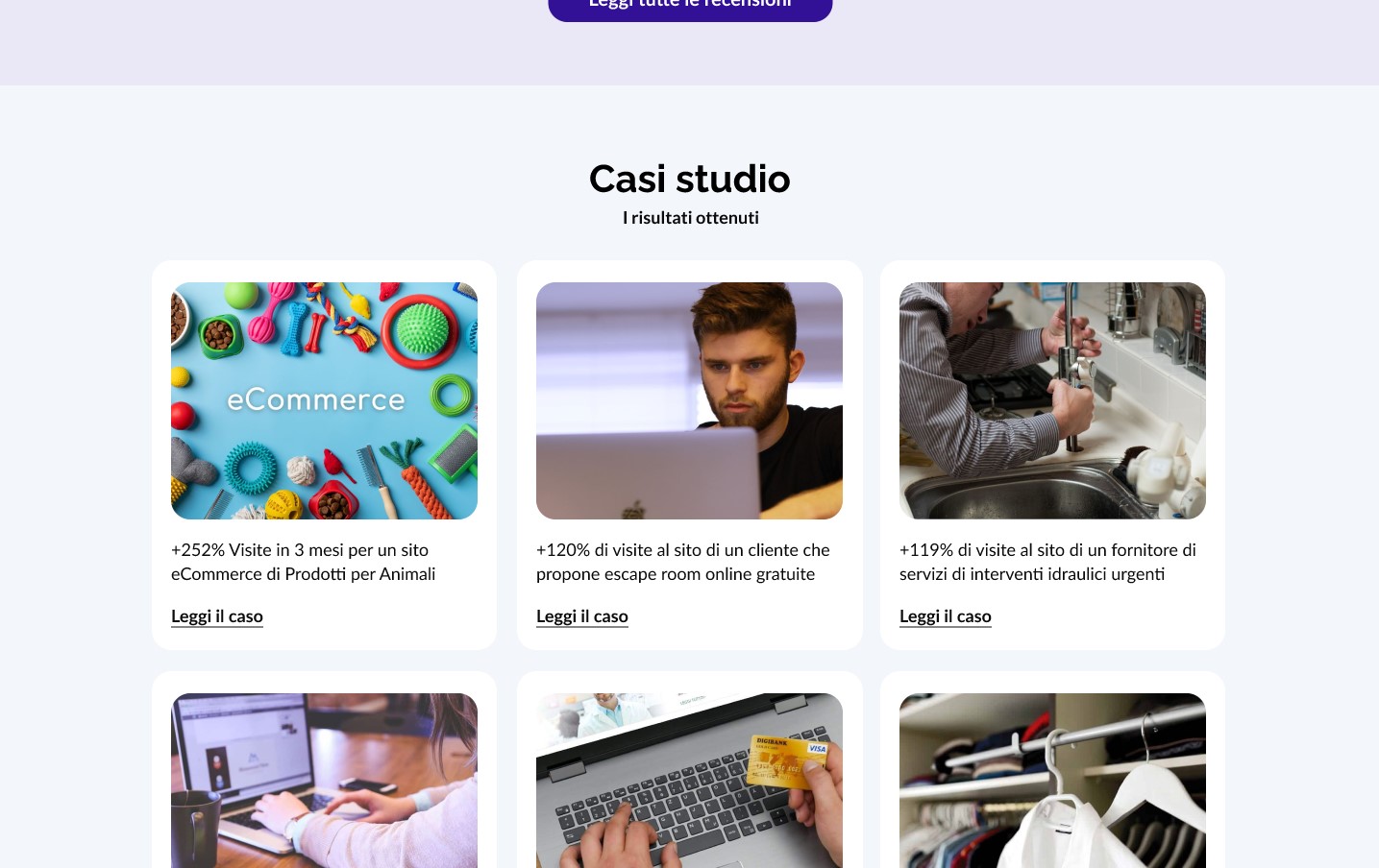 Dopo aver chiesto al cliente quali fossero le principali obiezioni degli utenti, ho cercato di strutturare la pagina per accompagnare il potenziale cliente dell’azienda verso la scoperta dei servizi offerti.